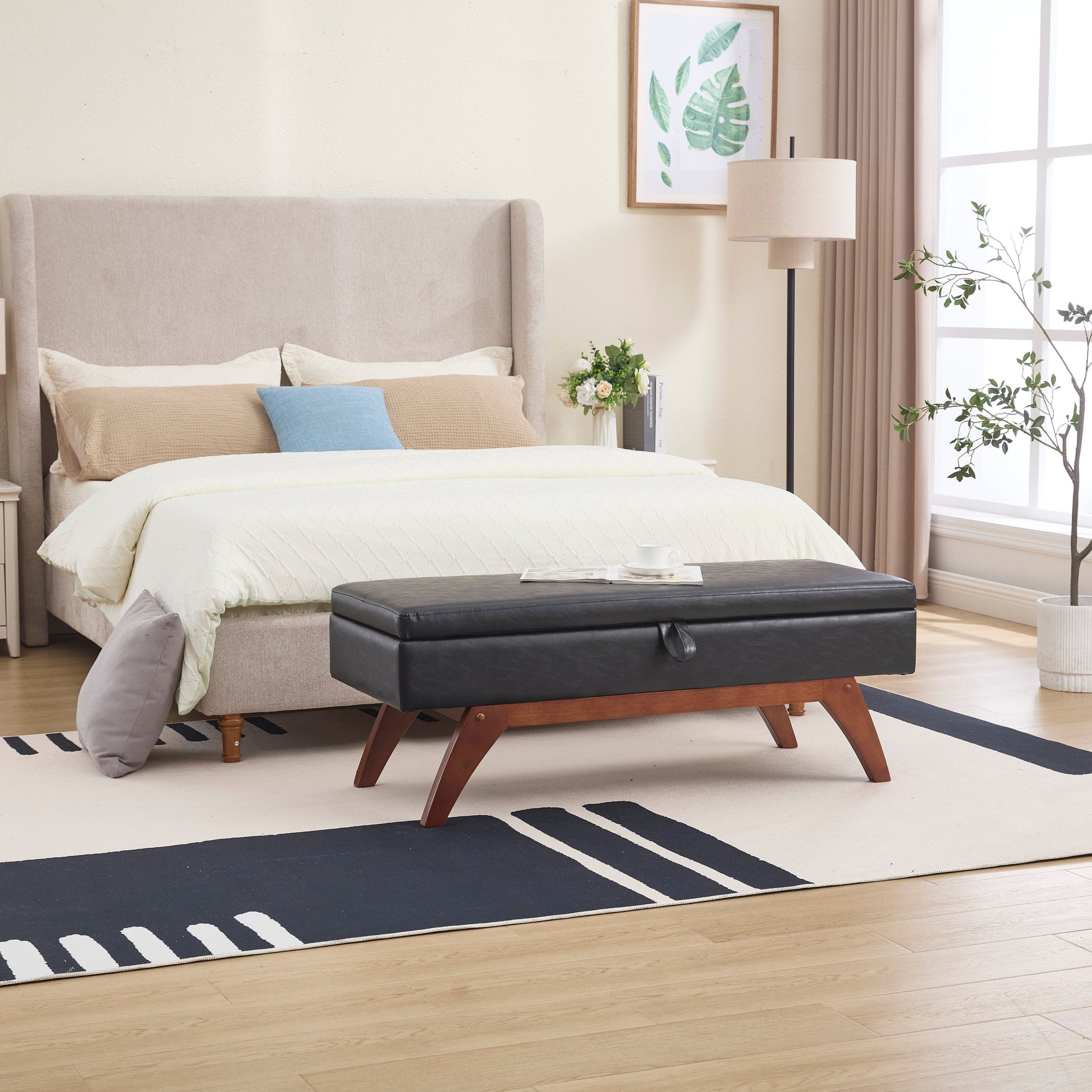 - Storage functionHidden storage space: The stool has a storage function inside, which is a very practical design highlight. You can keep your bedroom clean and organized by storing items you don't use often, such as spare blankets and throw pillows. The storage space design is hidden, will not affect the overall beauty of the stool, while meeting the needs of storage, maintain the beauty of the bedroom.Convenient storage experience