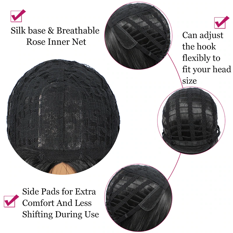 The black long wavy wig is made of advanced Indian + synthetic hair fibers, supplying you with a cozy wearing experience. This semi-synthetic curly wig is full, breathable and soft as 100% real hair, with partial lace no one can tell that you are wearing a wig. The black deep wavy wig is definitely a stellar addition to your wig collection.