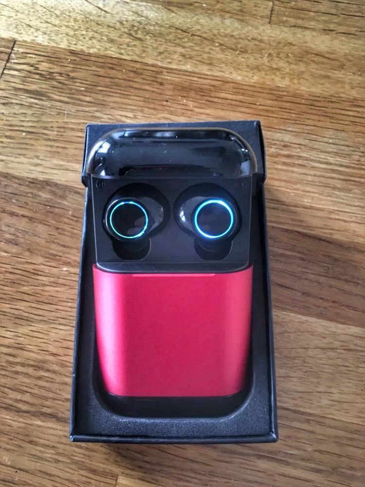 Super-light wireless earphones with the latest Bluetooth technology. Receive calls and listen to music with high-quality stereo sound. Sweat-proof and waterproof, you can use it indoors or outdoors in any kind of weather. Equipped with built-in microphone and charging dock, all you have to do is put it in your pocket.