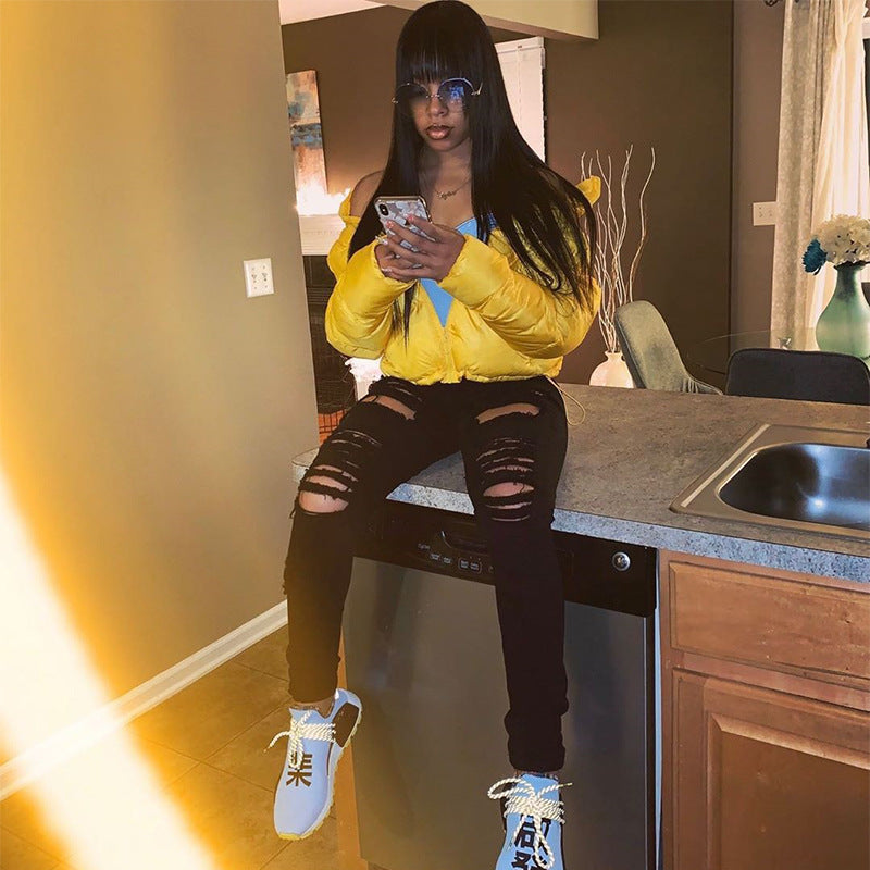 Fashion Short Coat Winter Warm Long-sleeved Stand Collar Zipper Bread Cotton Coat With Drawstring Design Women's Jacket