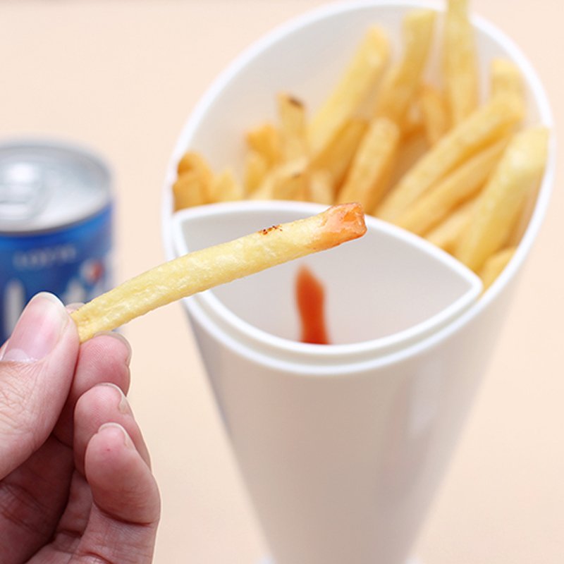 - It’s really hard to take a jog when you’re holding french fries in one hand and ketchup in the other. Free up one hand to eat with the French Fry Cone & Dip after the drive-thru!