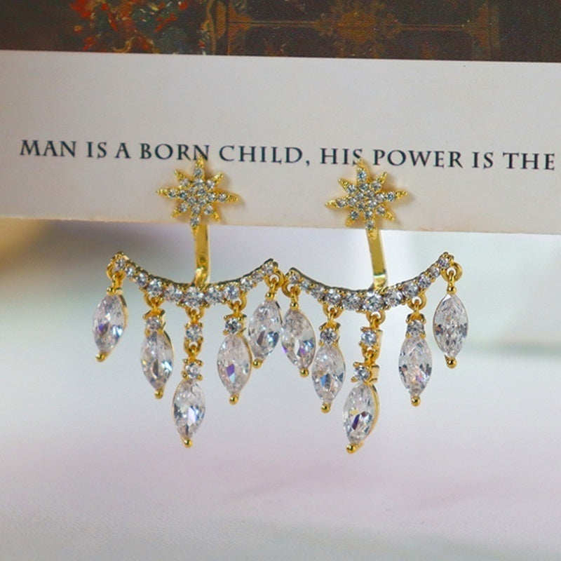 New Retro Eight Awn Star Zircon Earrings Fashion Pendant Stud Earrings